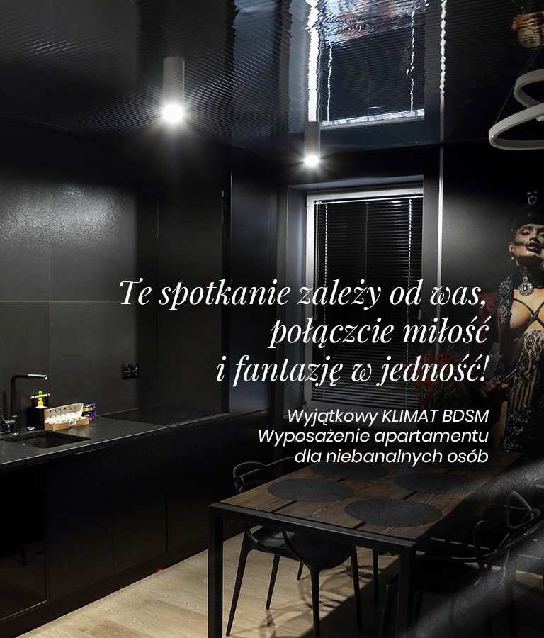 Niech Wam towarzyszy od progu smak miłości w klimacie BDSM. Poznajcie zupełnie inny smak zabaw, a także być może całkiem nowe reakcje Waszych ciał. W naszym apartamencie rutyna odchodzi w zapomnienie, tutaj każdy może przybrać inną rolę.